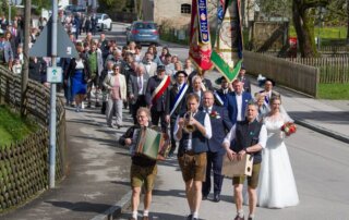 “Vielen, vielen Dank an euch, dass ihr unser Fest zu einem unvergesslichen Tag gemacht habt. Vor allem der Brautverzug war mega. So einen Brautverzug haben wir noch nie erlebt. Danke auch ,dass ihr unsere musikalische Wünsche erfüllt habt. Wir sehen uns wieder.”